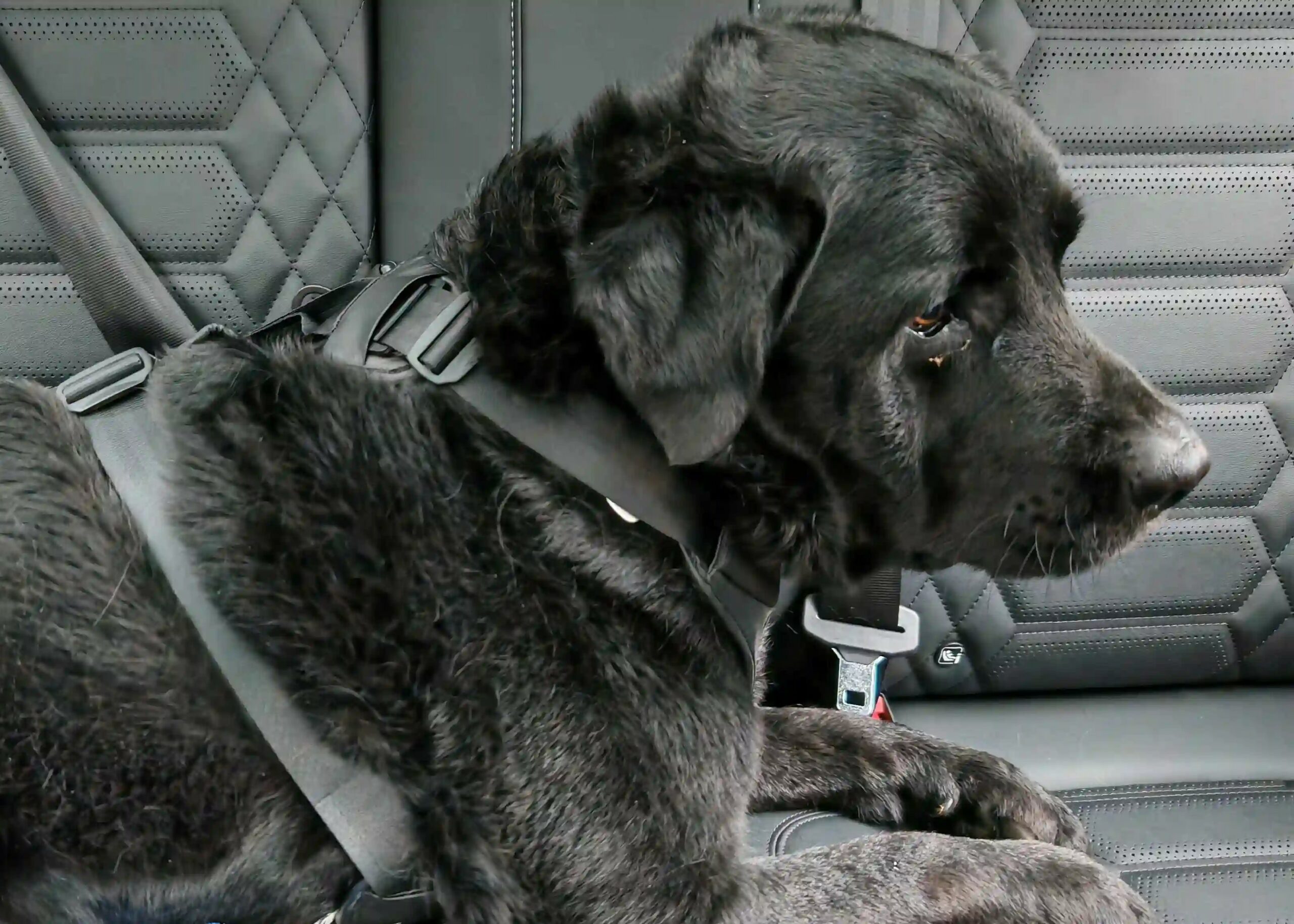 The technology behind the Cappy is straightforward but clever. Seatbelts thread directly through the harness, anchoring Marmite securely in place. This integration ensures that even if there is sudden braking, he remains protected and stable. The design prevents him from sliding or tumbling across the seat, which is especially important for a dog who tends to get anxious in cars.